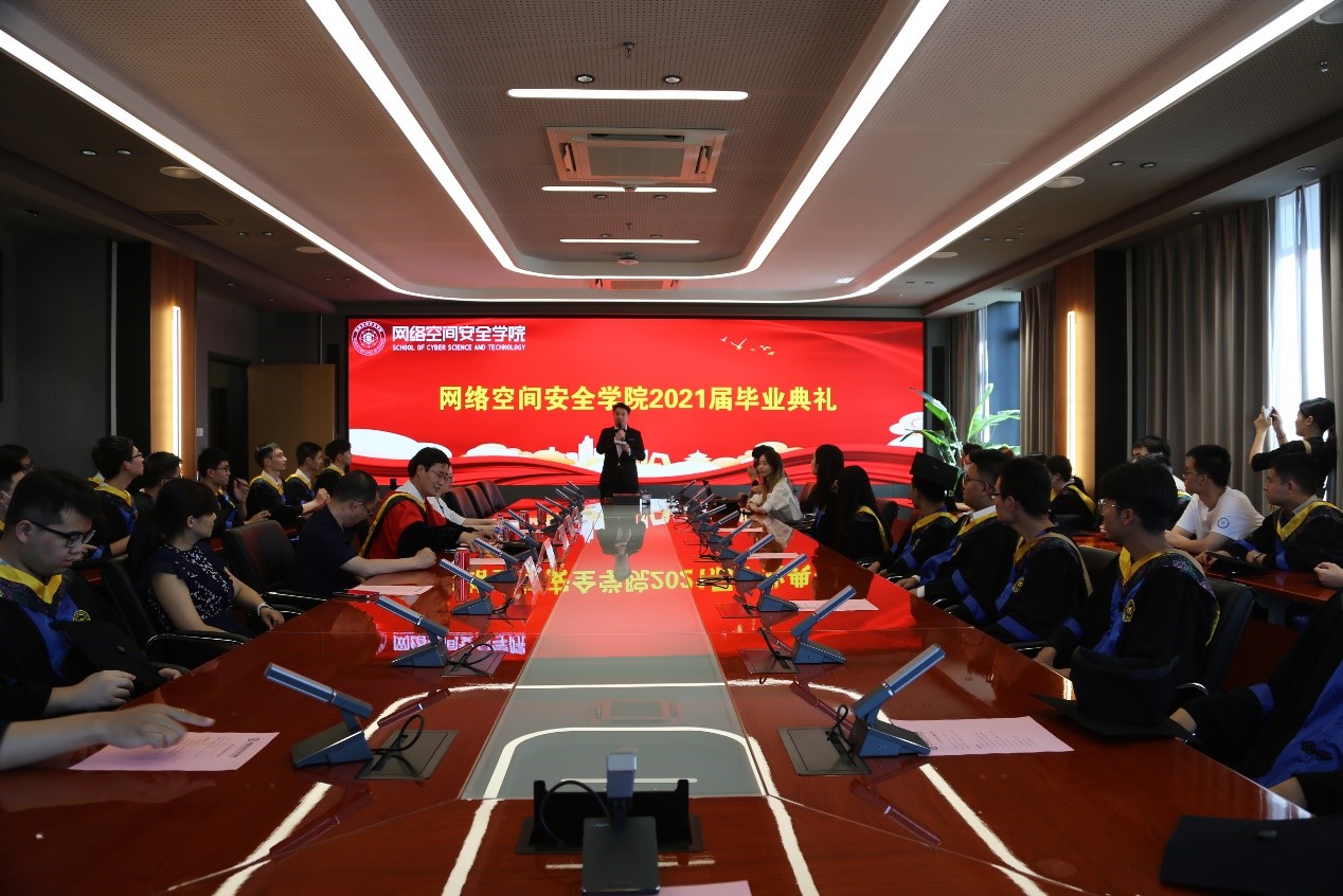 六月的夏日灿灿,离别脚步渐渐。2021年6月19日下午3点30分,网络安全学院2021届本科生硕士生毕业典礼在第一馆510会议室顺利举行。网络空间安全学院院长刘建伟、党委书记蒋燕玲、副院长伍前红、副院长白琳、副书记祝贺、信息对抗系主任毛剑、2021届辅导员管天玉、刘芝婷以及2021届全体毕业生参加本次典礼。